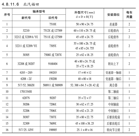 | 序号 | 軸(zhóu)承型号 | 外(wài)形尺寸(mm) | 安(ān)裝部位 | 每(mei)車用量 | |