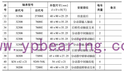| 39 | 30309 | 7309E | 45×100×27.25 | 分動器中橋驅(qū)動軸前 | 1 | |