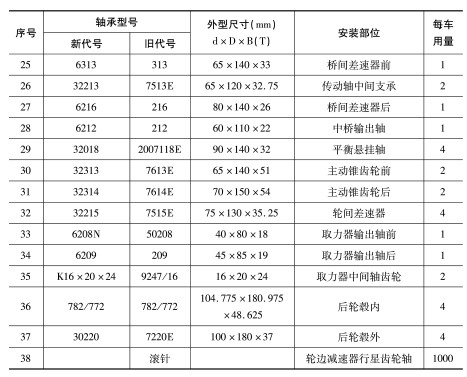 | 序号 | 軸承型号 | 外(wài)形尺寸(mm) | 安裝(zhuāng)部位 | 每車用(yong)量 | |