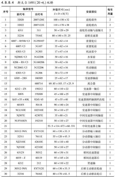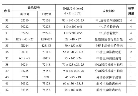 | 32 | 30222 | 7222E | 110×200×41 | 中、後橋(qiao)輪毂内 | 4 |