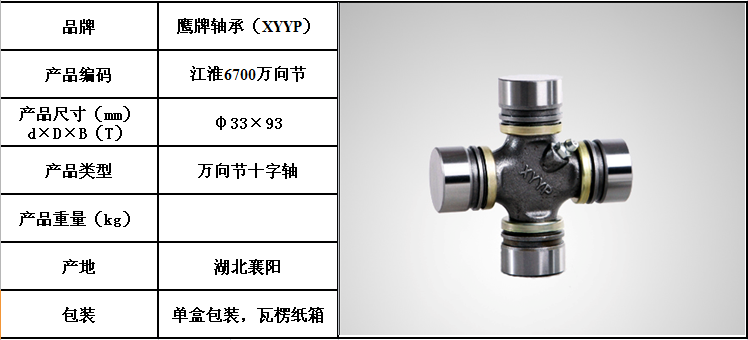 萬(wàn)向節十字(zì)軸-江淮6700萬(wàn)向節-φ33×93-鷹牌(pái)軸承
