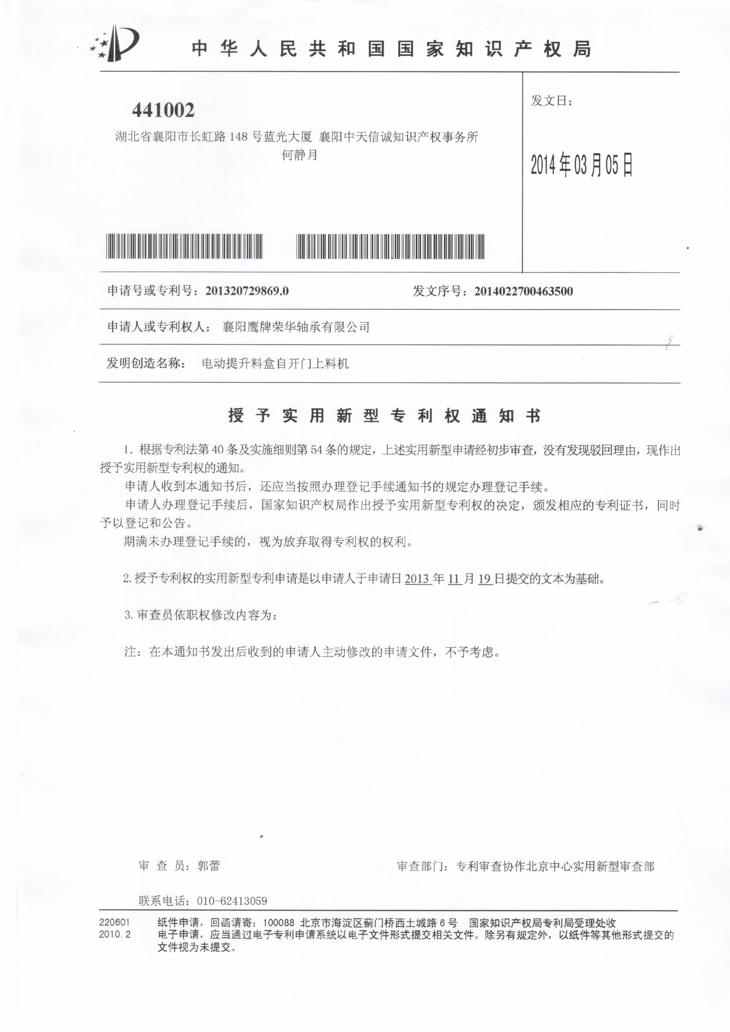 鷹牌軸(zhóu)承圓錐(zhui)滾子軸承自(zi)動裝配電動(dòng)提升料盒自(zi)開門式上料(liao)機