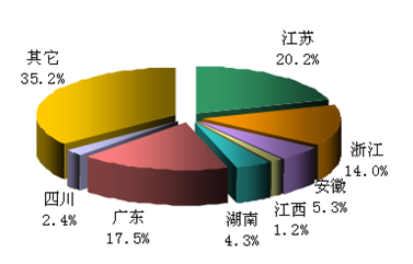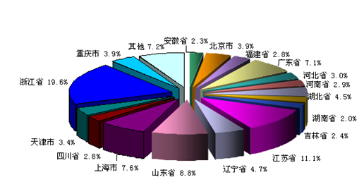 我國2012年圓錐滾子軸(zhóu)承産業消費區(qū)域分布如下: